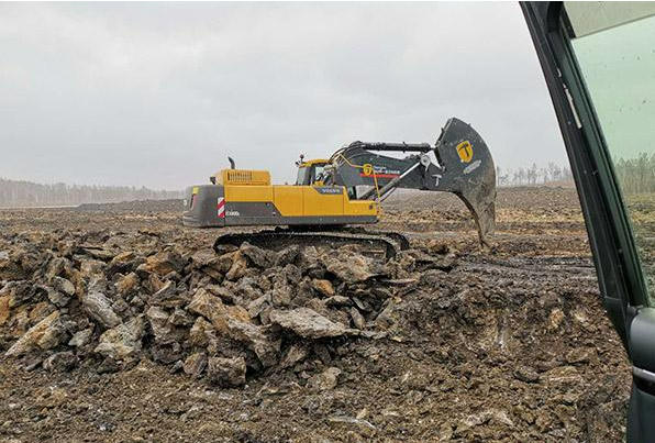 装配畅安穿山甲一体式钩机臂的沃尔沃挖掘机正在俄罗斯西伯利亚地区施工